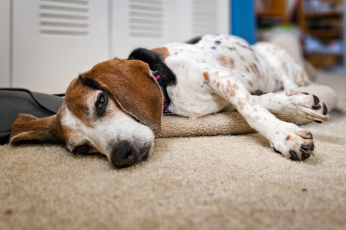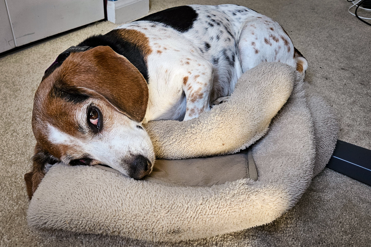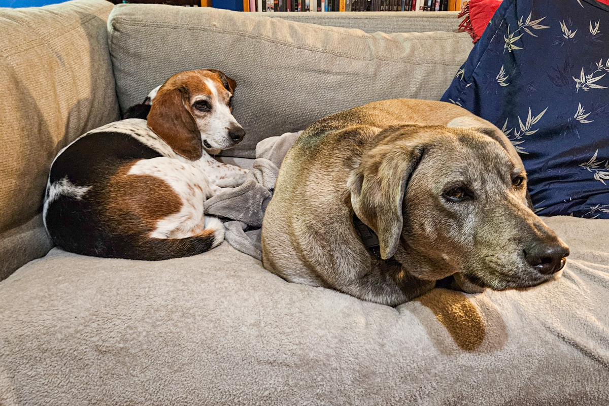 I just got back from a 45-minute walk with Cassie, in which we covered 4.95 km (just over 3 miles) at a pace that Butters could never in a dog's age keep up for that long. According to my doorbell camera, Butters raised four objections to this at roughly 10-minute intervals, fortunately none of which lasted longer than 40 seconds. And she appeared to forgive me when we got back.