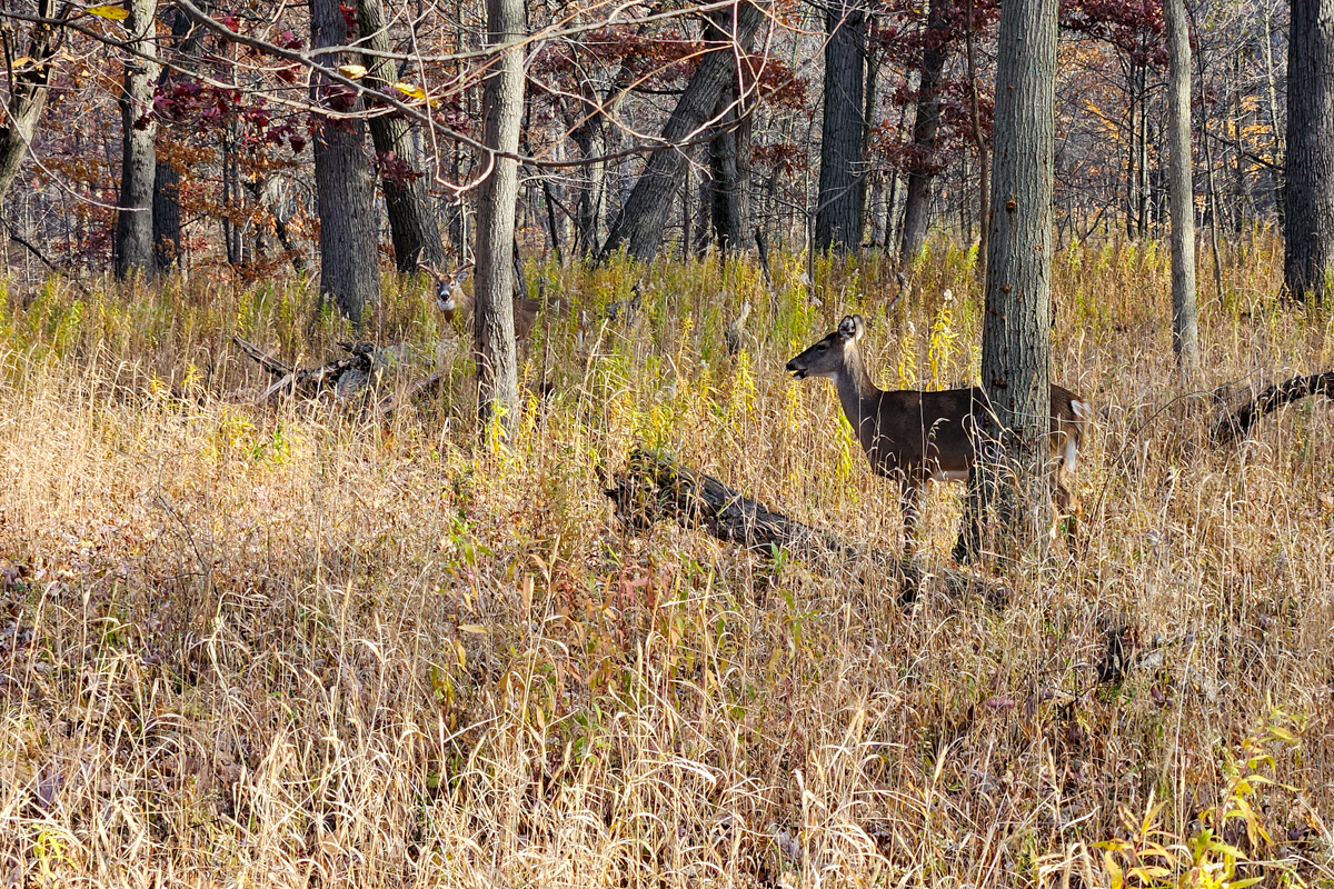 I think the two of them just wanted some alone time and hoped the humans would continue on their ways. We didn't see any other deer on the walk, though, so clearly the others found more privacy than these two.