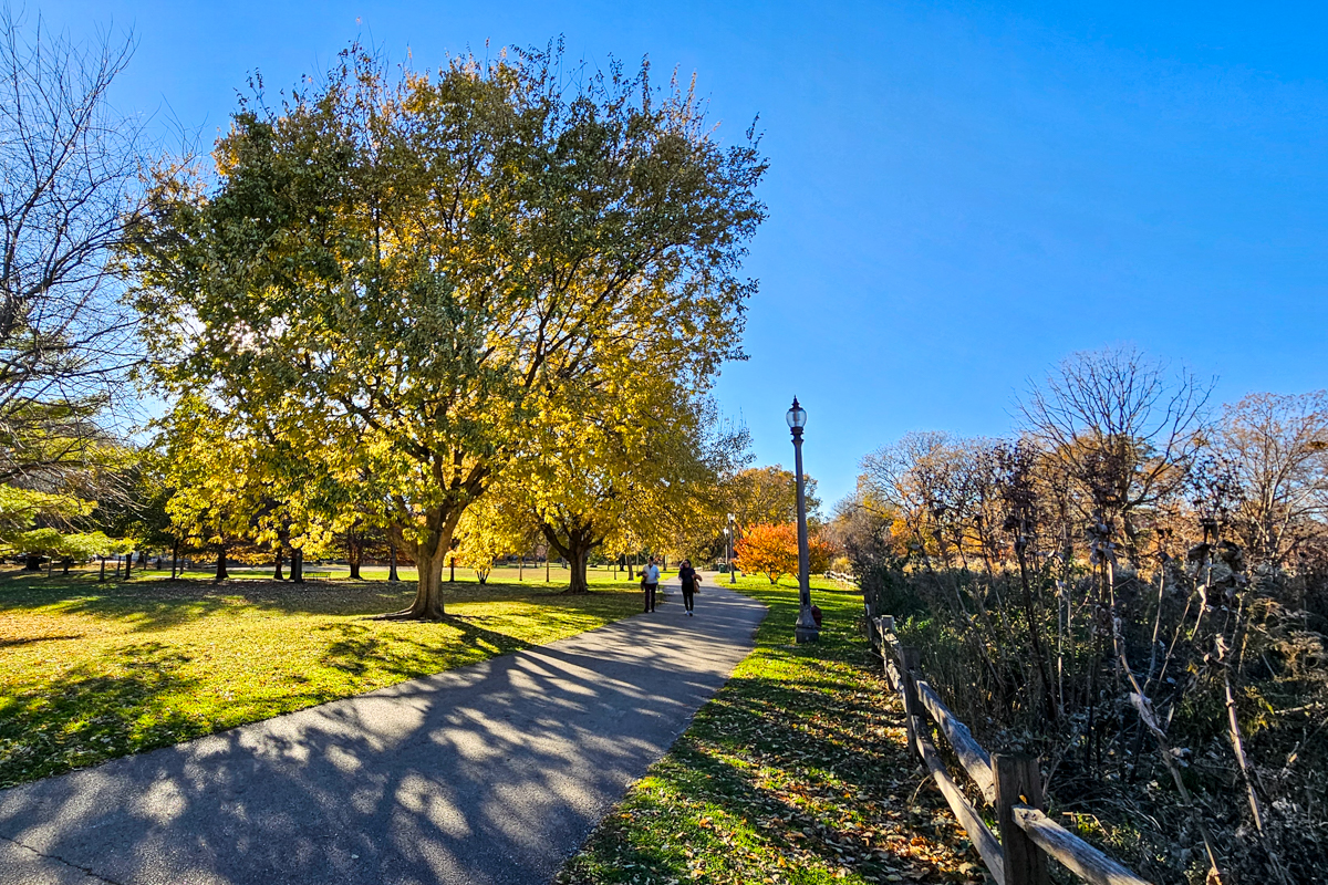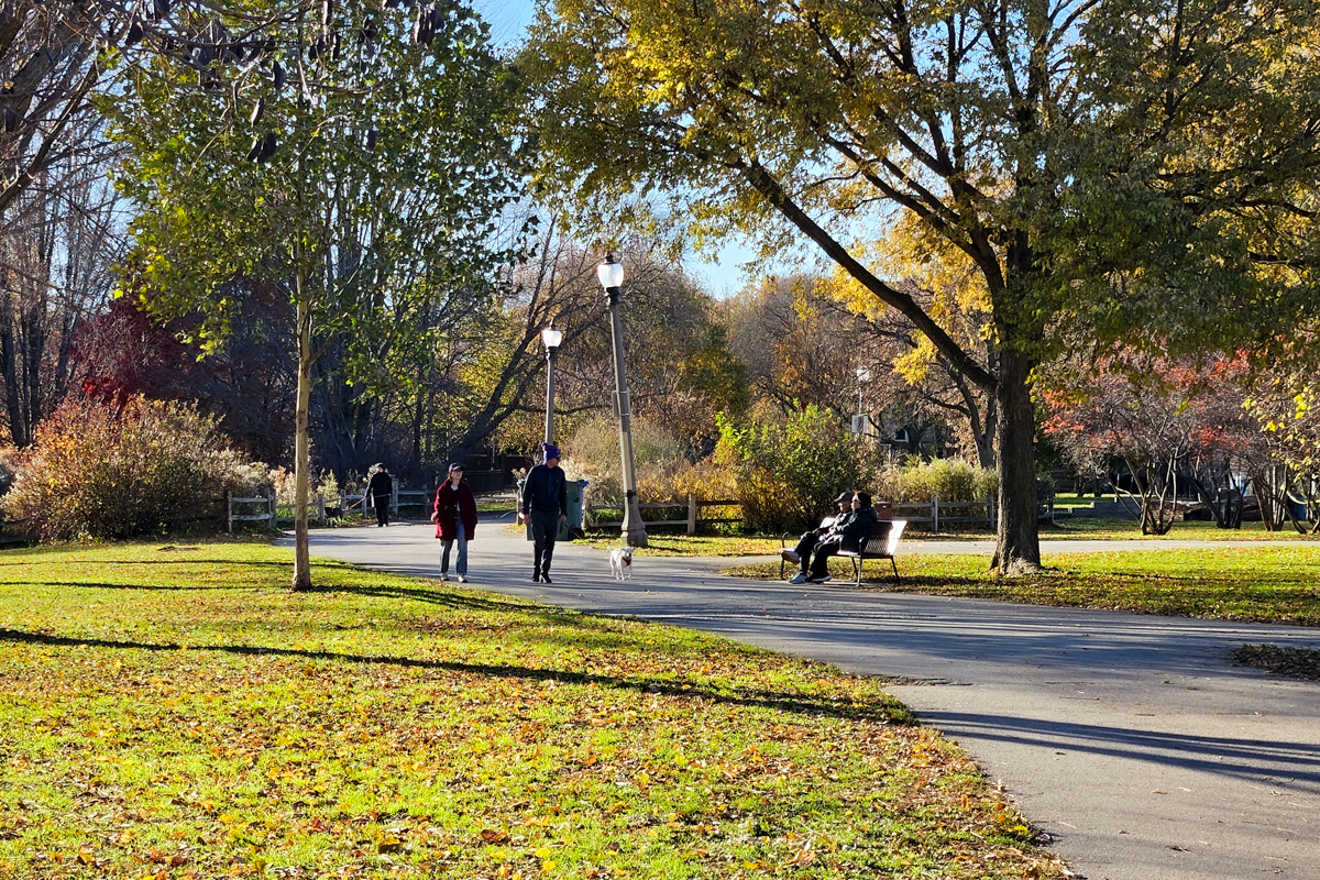 Cassie and I took a stroll through the local park. The maples are holding onto their leaves like winter will never come—though they seem to have given up on the chlorophyll for now: